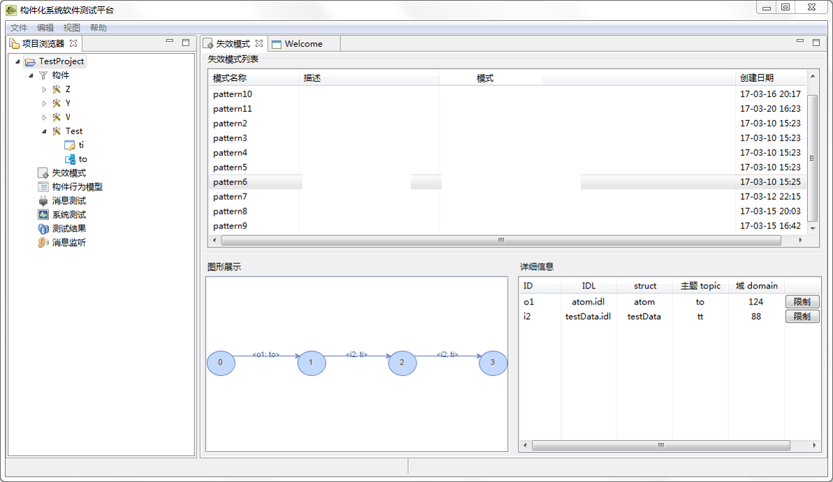 DdsTest支持根据IDL接口描述,为DDS通信中间件下的构件自动生成测试用例,并能够自动生成发送DDS报文的数据收发端,进行报文的发送与接收。能够支持国产BlueDCS、RTI等DDS中间件系统。同时该系统还支持基于失效模式描述,进行系统流程级的功能和性能测试。