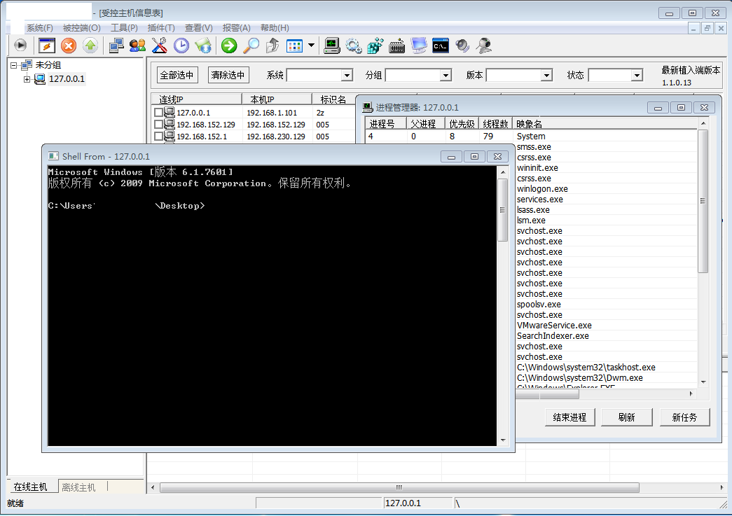 Deagle是早期研发的一款远程主机监控软件,能够对远程主机进行全方位监控,收集进程、屏幕、摄像头、麦克风等多种信息,并支持实时视频传输、文件断点续传等功能。