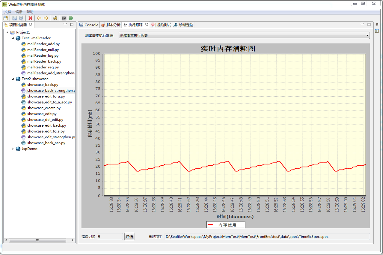 测试执行跟踪:跟踪脚本执行过程中的内存变化情况,并图形化展示。