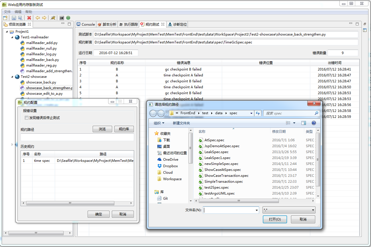 内存性能规约:采用规约语言对内存性能缺陷进行规约,并能够自动判定规约是否得到满足。