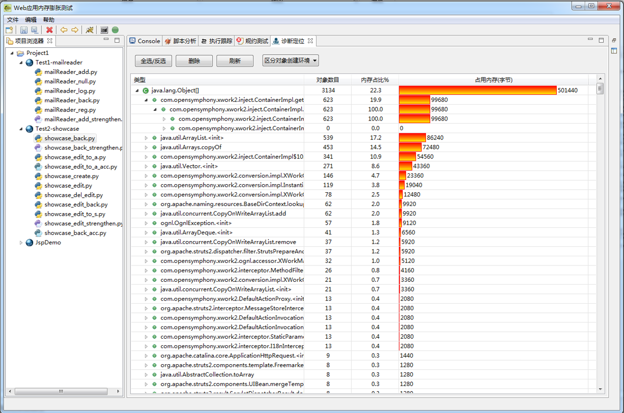 MemTest是一款针对Java Web容器的内存性能测试、跟踪与诊断工具,能够对测试脚本进行分析和变换,自动实施面向内存性能缺陷的测试,能够跟踪Web容器的内存资源使用,对内存性能缺陷进行规约,并能够准确诊断内存泄漏对象。